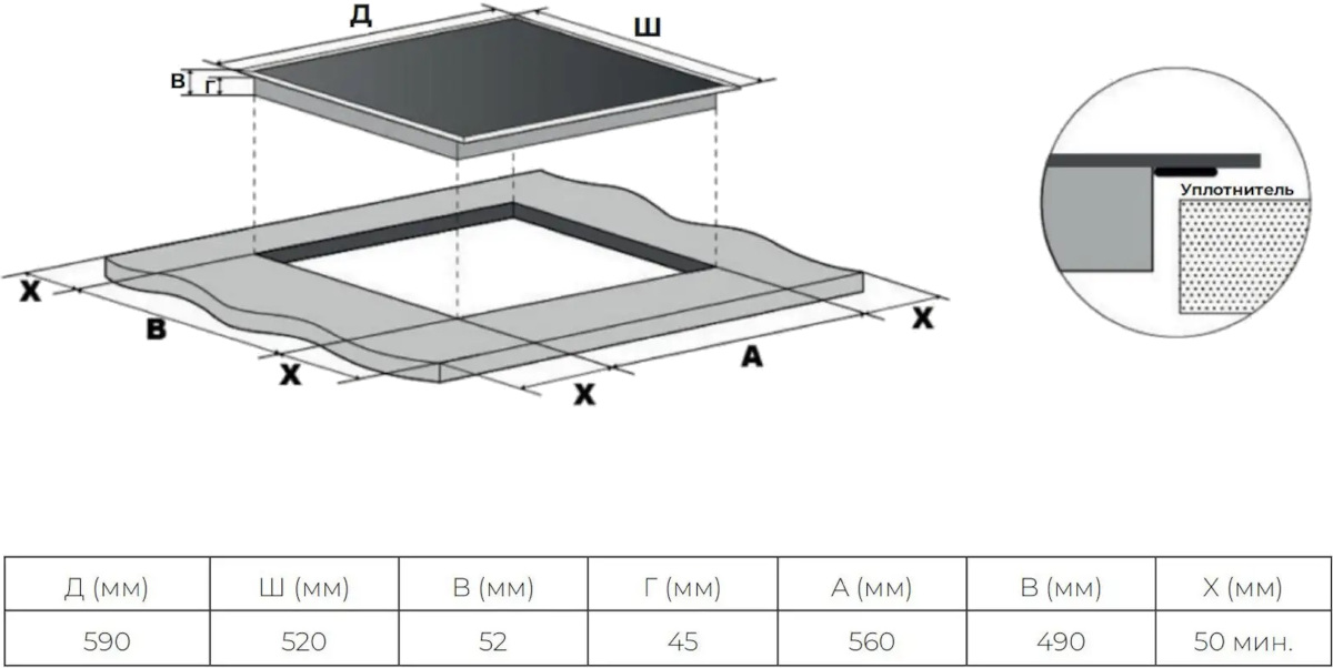 Haier HHK-C63NDB - схема встраивания к варочной панели на разных языках на Hausdorf