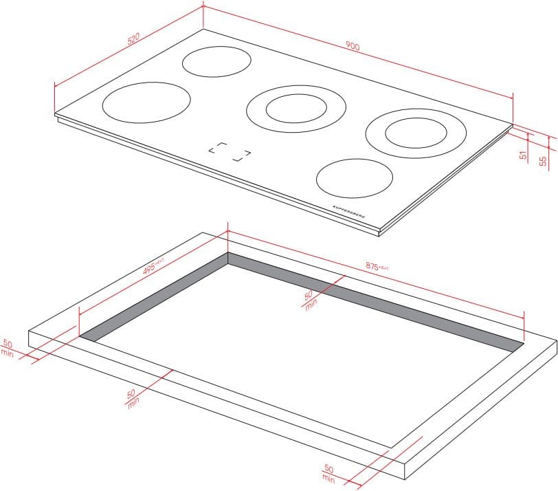 Kuppersberg ECS 902 - схема встраивания к варочной панели на разных языках на Hausdorf