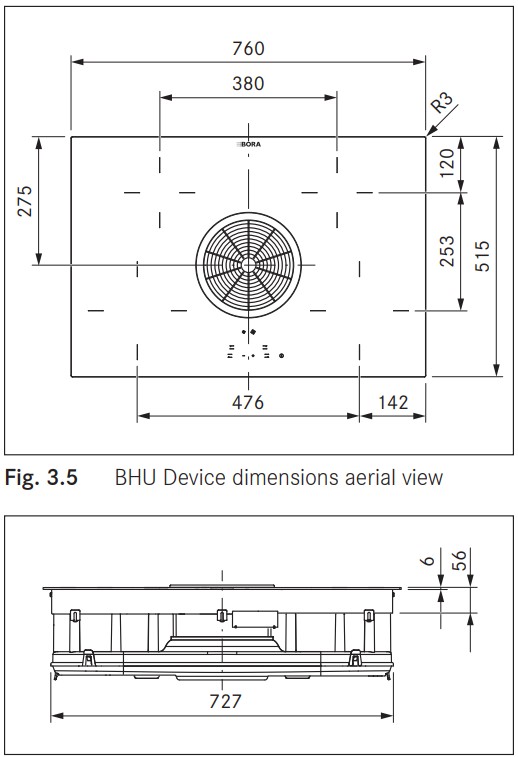 BORA BHU - схема встраивания с размерами к варочной панели на разных языках на Hausdorf