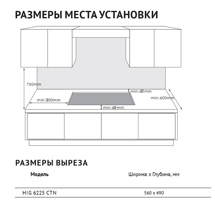 Korting HIG 6225 CTN - схема с размерами версия 2 к варочной панели на разных языках на Hausdorf