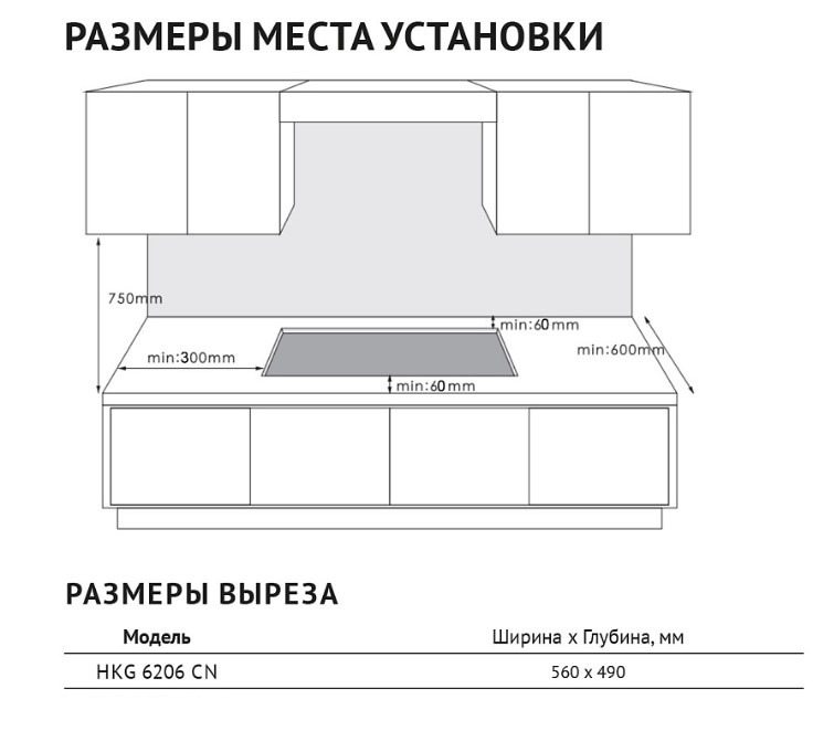 Korting HKG 6206 CN - схема с размерами версия 2 к варочной панели на разных языках на Hausdorf