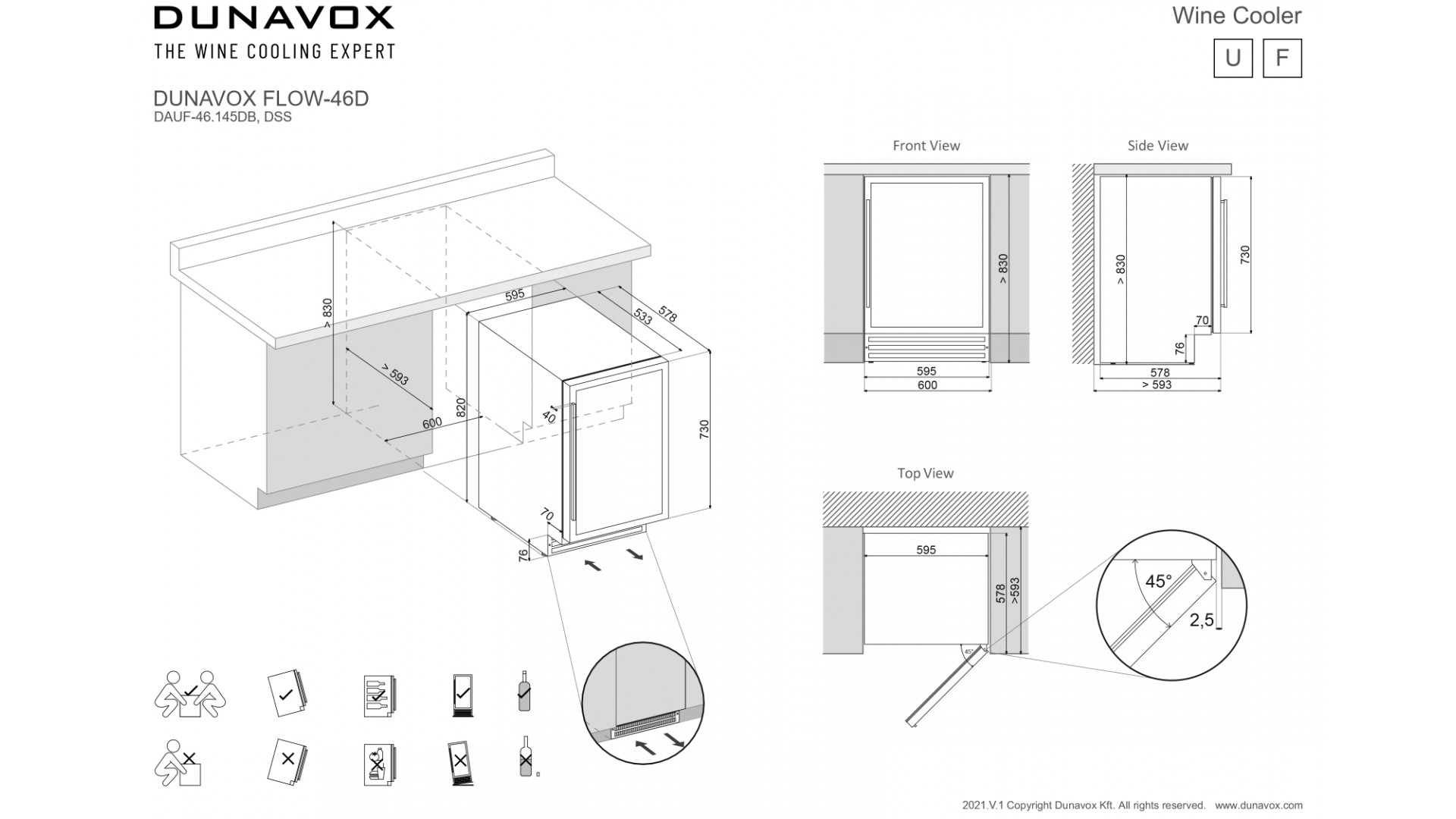 Dunavox DAUF-46.145DC - схема встраивания к винному шкафу на разных языках на Hausdorf