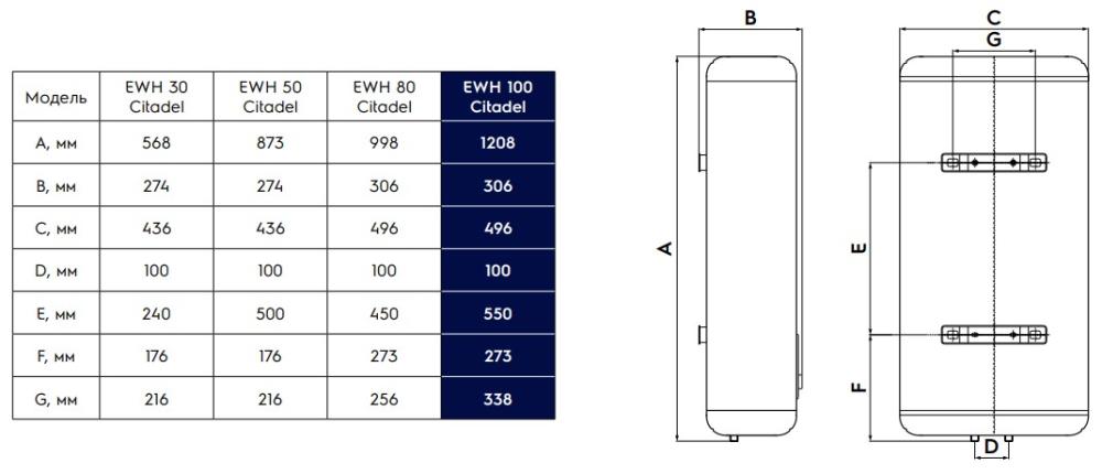 Electrolux EWH 80 Citadel - схема с размерами версия 2 к водонагревателю на разных языках на Hausdorf