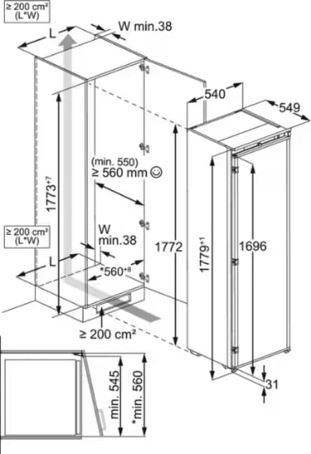 Electrolux KUN7NE18S - схема встраивания к холодильнику на разных языках на Hausdorf