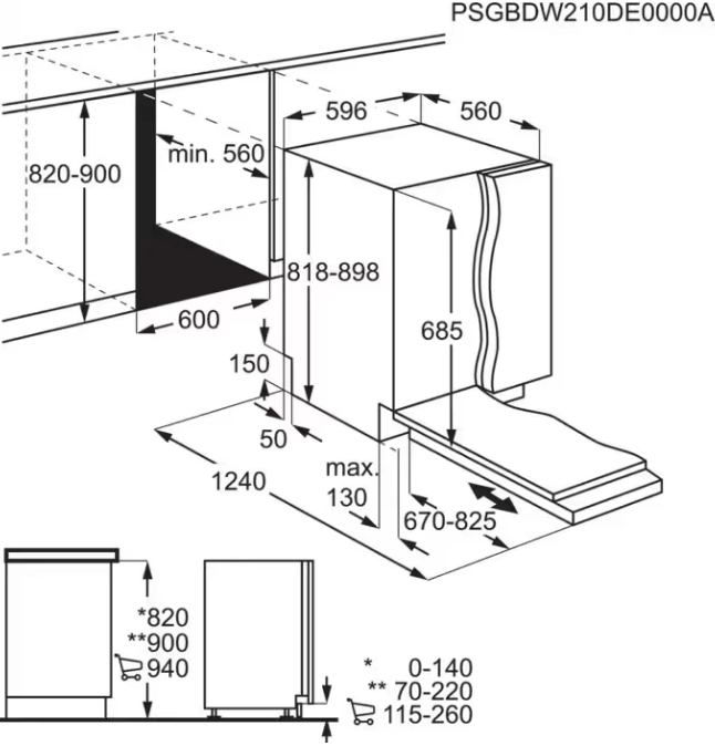 AEG FSE76738P - схема с размерами версия 2 к посудомоечной машине на разных языках на Hausdorf