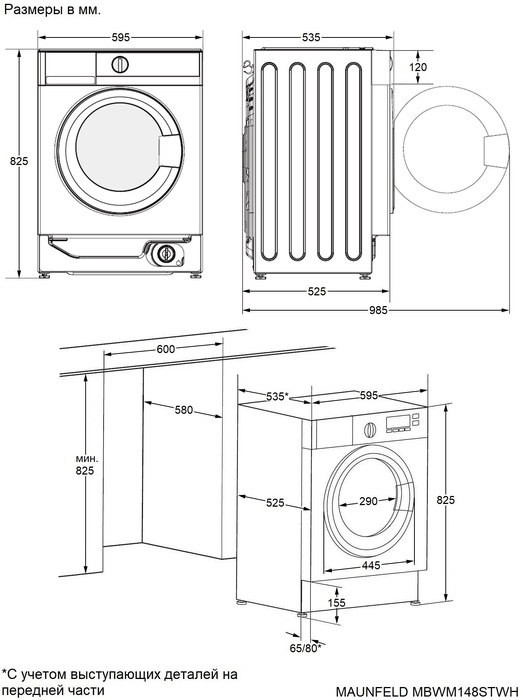 Maunfeld MBWM148STWH - схема с размерами версия 2 к стиральной машине на разных языках на Hausdorf