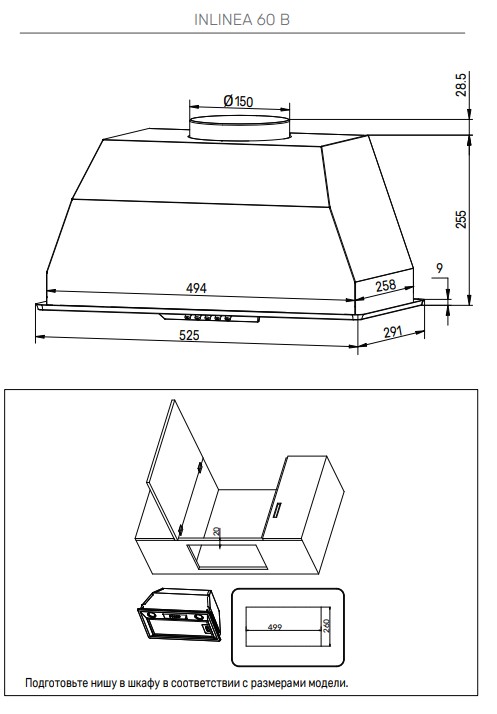 Kuppersberg INLINEA 60 B - схема с размерами версия 2 к вытяжке на разных языках на Hausdorf