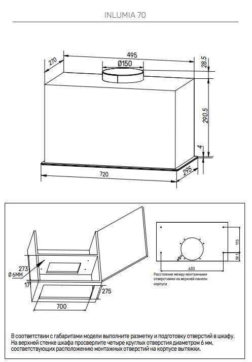 Kuppersberg INLUMIA 70 BG - схема с размерами версия 2 к вытяжке на разных языках на Hausdorf