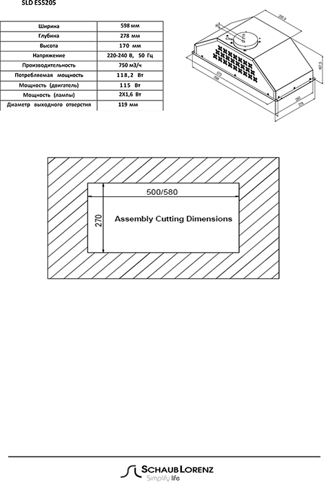 Встраиваемая вытяжка Schaub Lorenz SLD ES5205