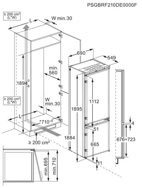 AEG NSC7P751DS - схема с размерами версия 2 к холодильнику на разных языках на Hausdorf