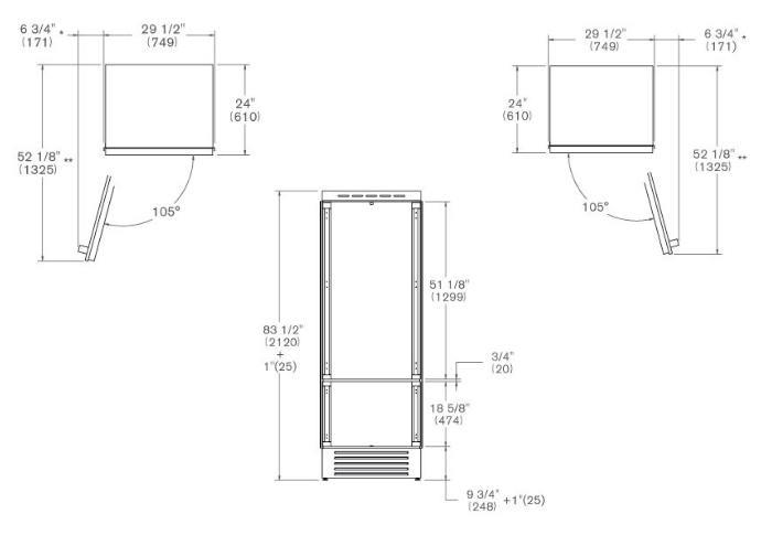 Bertazzoni REF755BBLPTT/24 - схема с размерами версия 2 к холодильнику на разных языках на Hausdorf