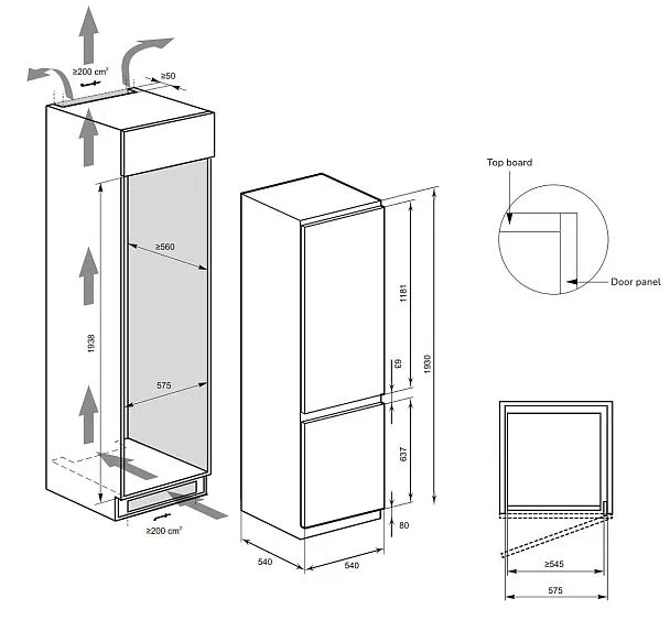 Kaiser EKK 60193 - схема встраивания к холодильнику на разных языках на Hausdorf