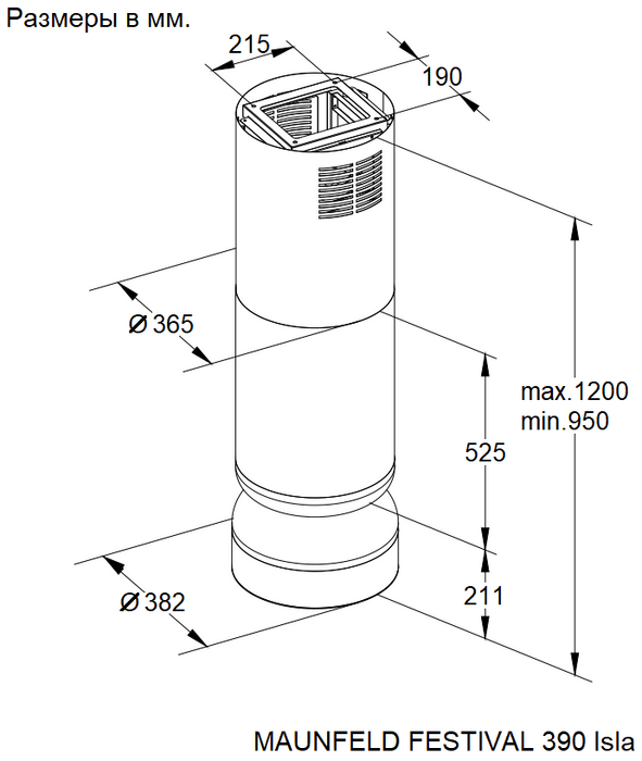 Maunfeld FESTIVAL 390 Isla Burgundy - схема с размерами версия 2 к вытяжке на разных языках на Hausdorf