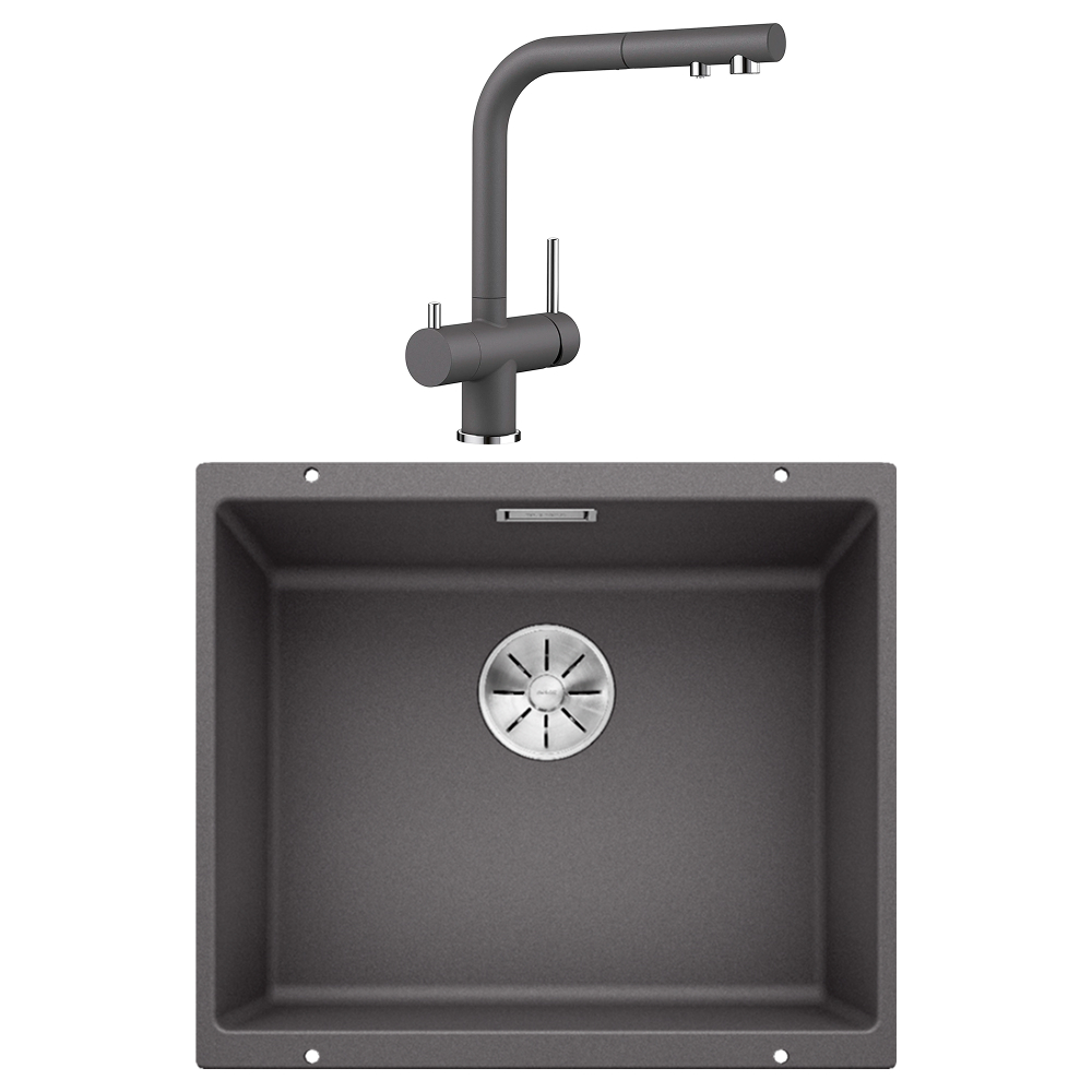 Комплект Blanco (мойка SUBLINE 500-U SILGRANIT + FONTAS-S II SILGRANIT темная скала) в Казани и Татарстане