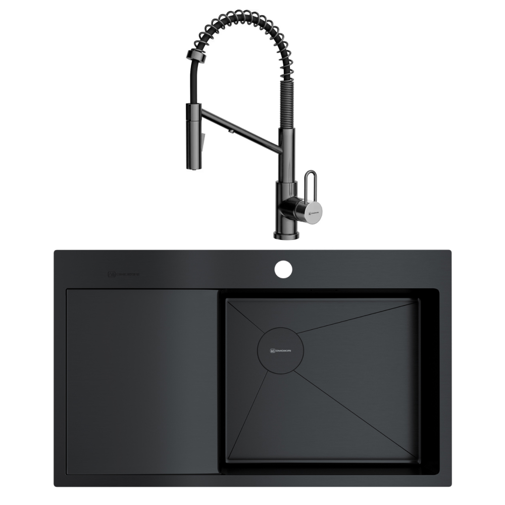 Комплект Omoikiri (мойка AKISAME 86 SIDE GB-R + смеситель MIKAWA 2 PLUS-SB GB) в Казани и Татарстане